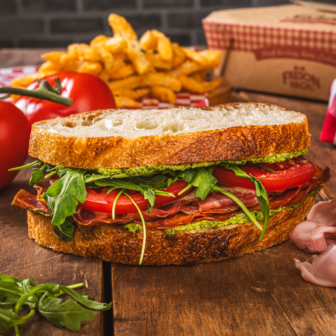 Try our sweet and savoury crispy chicken sandwich! It’s topped with crunchy dill pickles, honey, and cool ranch on a bed of lettuce, all wrapped in our classic Old World French Bread.