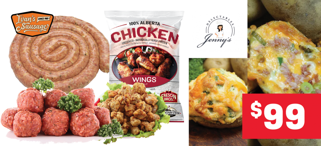 Our Freezer Packs include a combination of Premium Cut Alberta Beef, Pork, Chicken or Ivan’s German Sausage Links, dependant upon the pack chosen.