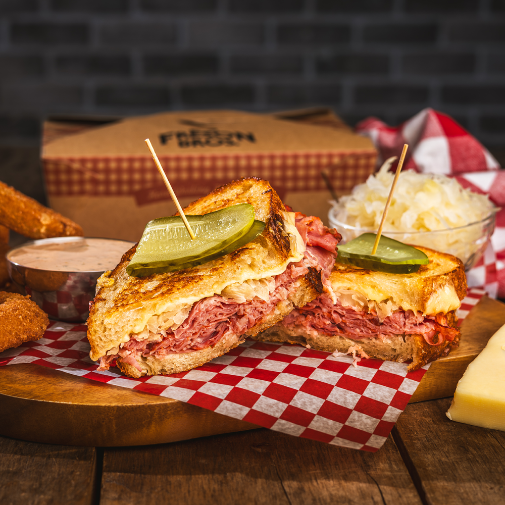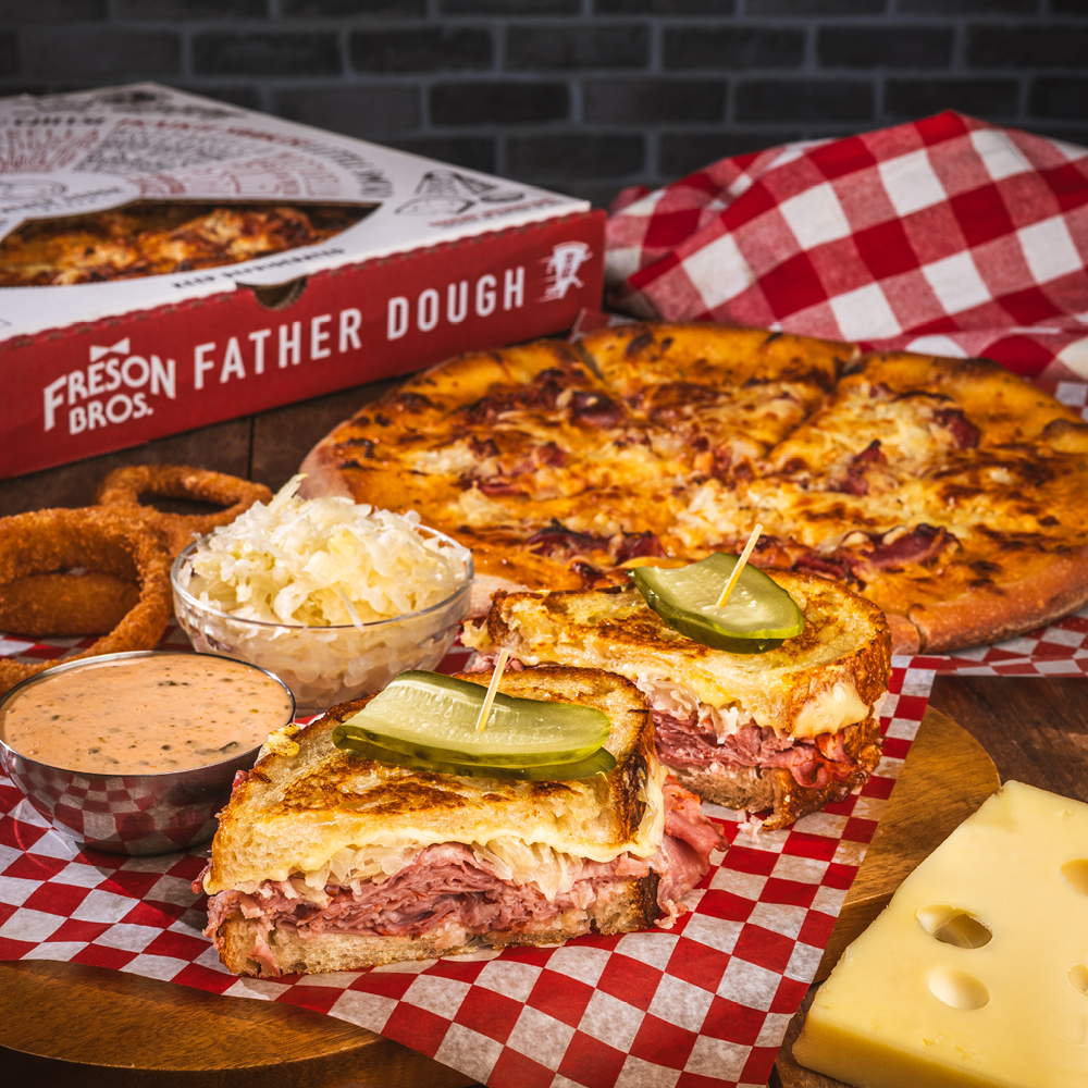 The Alberta Reuben has landed! We’re taking our rich Montreal Smoked Alberta Beef Brisket, pairing it with Swiss Cheese, Sauerkraut, and tangy dressing, and delivering it two ways: as an epic Sandwich or a wildly good Pizza. Only here for April, enjoy it before it’s gone!