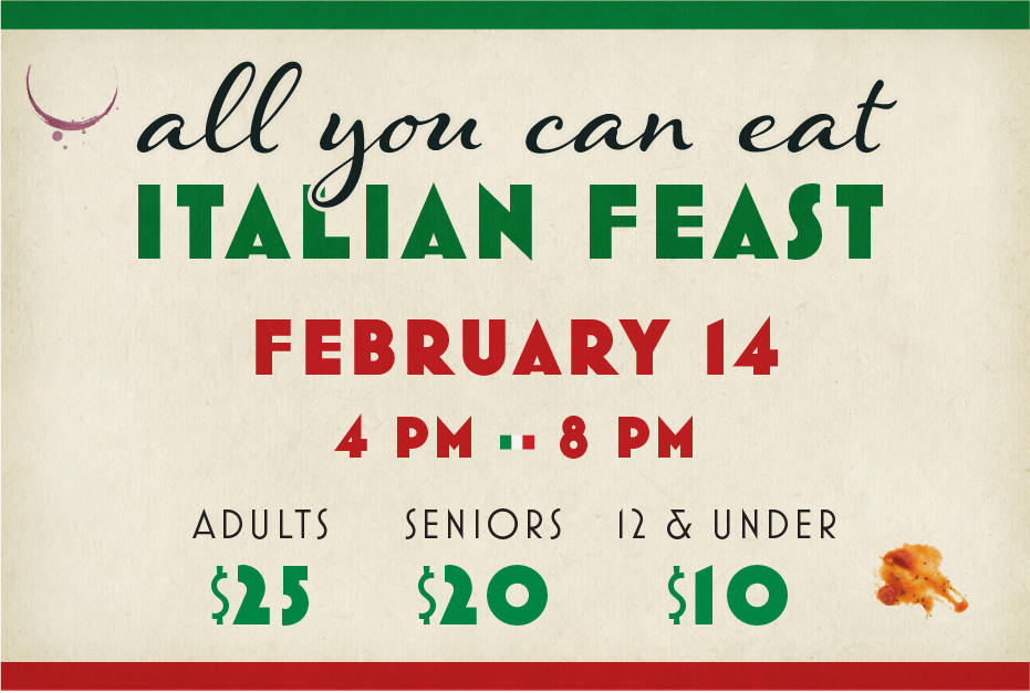We invite you to make our table yours for the evening, for this great family All You Can Eat Italian Feast.