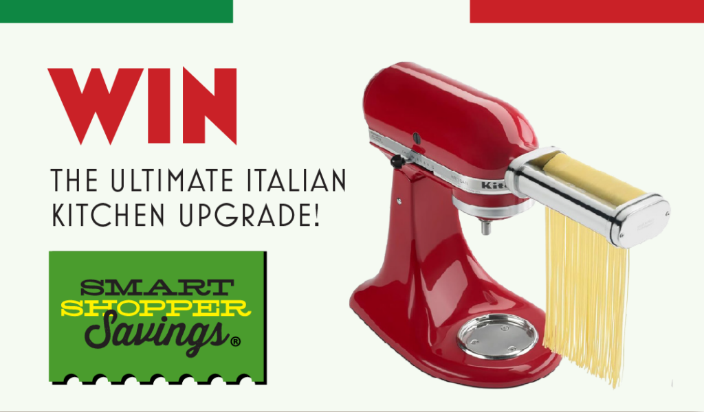 One lucky winner will receive the ultimate kitchen upgrade: a KitchenAid® Stand Mixer and a KitchenAid 3-Piece Pasta Roller & Cutter Set.